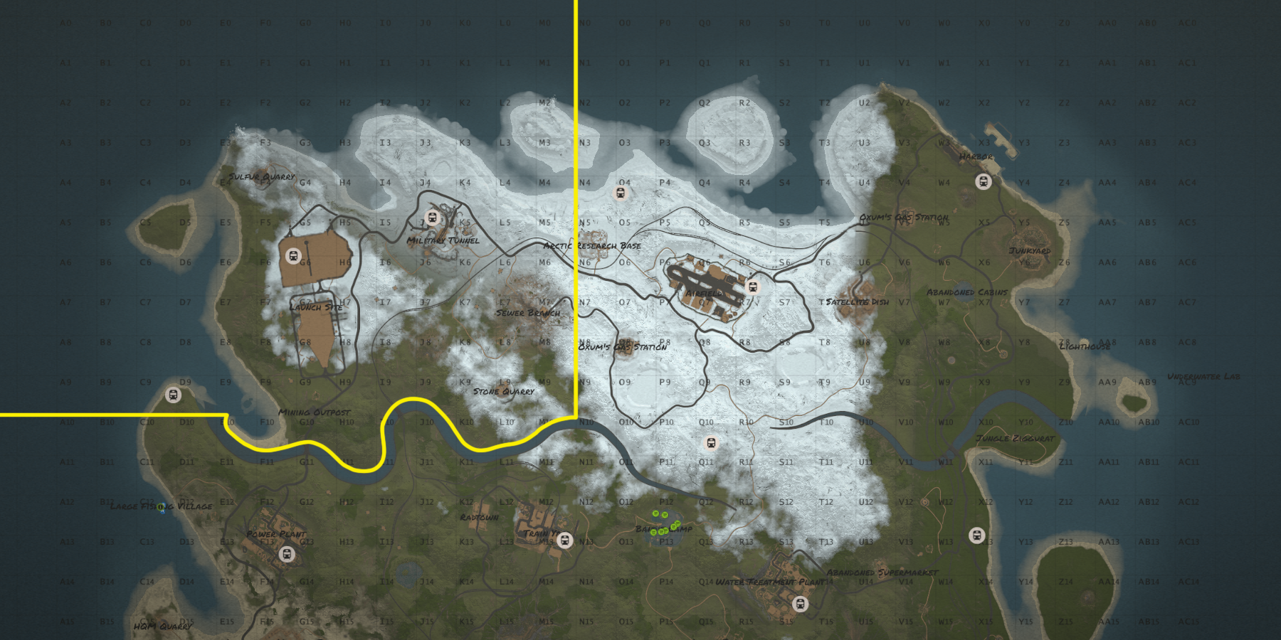 This wipe, there will be a designated PVP and raid zone (which will be referred to as PRZ below), as designated by the yellow outline below. If your TC authorization range extends into the PRZ, your base will be considered within the PRZ and are subject to PRZ rules. There should be no question of whether your base is on the border of the PRZ.